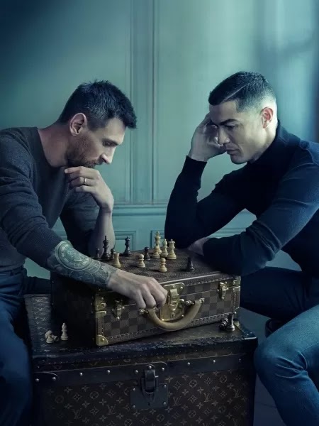 A rivalidade entre Lionel Messi e Cristiano Ronaldo foi capaz de balançar a internet em uma foto: de repente, os astros apareceram hoje (19) em uma imagem jogando xadrez. A publicação é da grife Louis Vuitton, que homenageia os astros do futebol mundial na véspera do início da Copa do Mundo 2022.